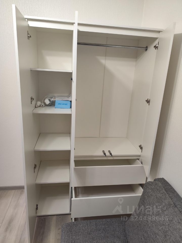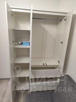 В квартире есть все необходимое для проживания. В комнате диван 140*190, вместительный шкаф с тремя выдвижными ящиками, комод с зеркалом, пылесос, телевизор, шторы Блэк аут.