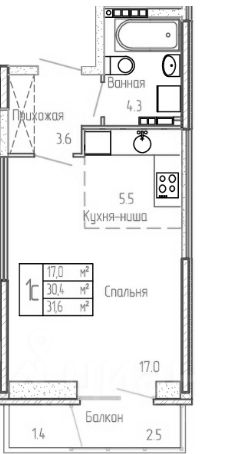 Сдается студия, площадь квартиры — 31,6 кв. м, расположена на 5 этаже. Идеальный вариант для пары без детей.