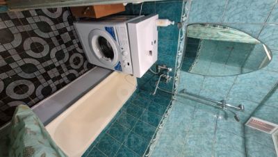 Кухня оборудована электроплитой, есть холодильник, кухонный гарнитур. Ванная комната укомплектована стиральной машиной и раковиной над ней, на прилагаемом видео они еще не установлены.
