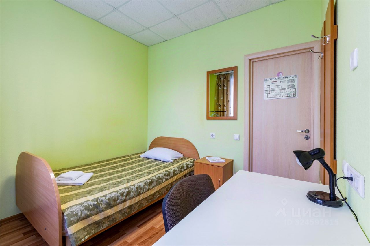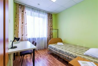 Меблировка: две односпальные кровати, две тумбы, письменный стол и стул, зеркало, шкаф, рейл для верхней одежды, холодильник (общий в коридоре блока). Санузел: душевая кабина, раковина, унитаз. Предоставляем возможность аренды постельного белья за дополнительную плату.