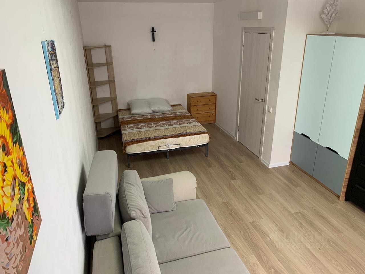 В квартире сделан косметический ремонт. Здесь есть всё необходимое для комфортного проживания: на кухне и в комнате установлена мебель, из техники — холодильник, телевизор и стиральная машина. Санузел совмещённый и оборудован ванной. Окна выходят на парковку.