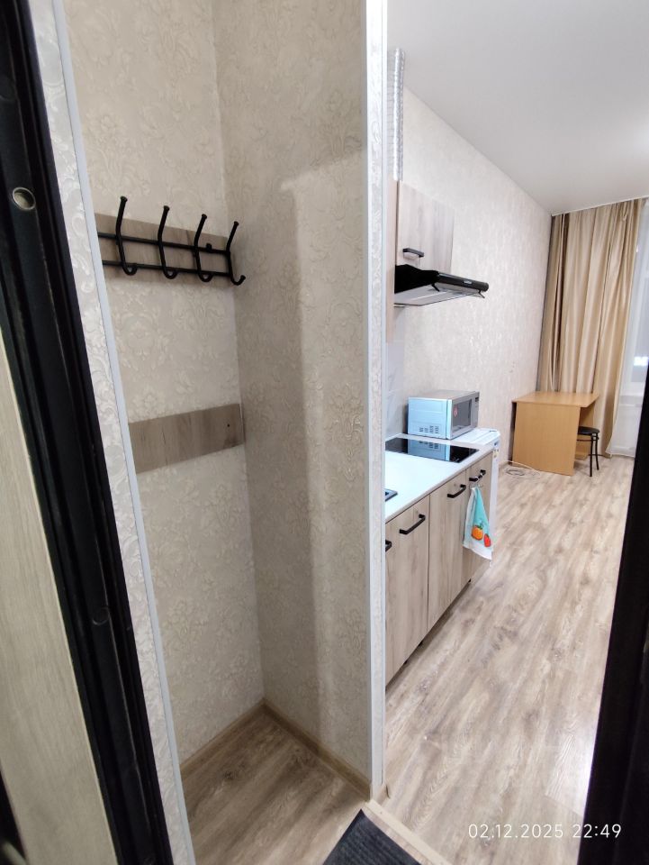 Уютная студия в бывшем общежитии коридорного типа. Новая техника: холодильник, микроволновка, стиральная машина, электрическая плита, вытяжка. В доме есть консьерж.