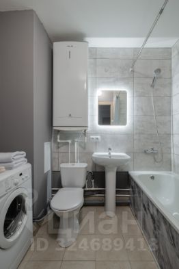 Ванная комната: ванная, стиральная машина, полотенца, утюг, гладильная доска, сушилка, фен, гель для душа, шампунь, мыло, зубная паста.