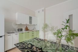 Кухня, укомплектованная плитой, холодильником, микроволновкой, чайником, фильтром для воды, а так же всем необходимым для приготовления и потребления пищи. Гостям предоставляются: постельное белье и полотенца отличного качества, шампунь, гель, мыло, высокоскоростной Wi-Fi, Фен, Утюг, Чай, сахар, кофе, соль.