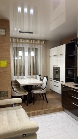 В квартире выполнен дизайнерский ремонт, который создаёт атмосферу уюта и современности. Обстановка включает мебель на кухне и в комнате, что позволяет сразу же заселиться без необходимости дополнительных трат. Из техники доступны кондиционер, холодильник, посудомоечная машина, телевизор и стиральная машина. Ванная комната оборудована душевой кабиной, а окна выходят как на улицу, так и во двор, что обеспечивает хорошую освещённость и свежий воздух.