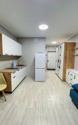 Квартира-студия без балкона. Есть мебель, бытовая техника. Коммунальные услуги небольшие. Страховой депозит 25 000 рублей, можно разделить на два месяца. Подробности по телефону.