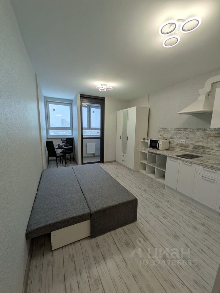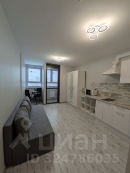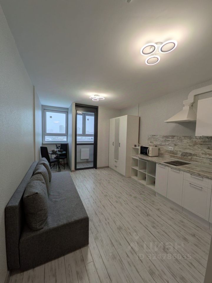 Просторная студия в новом доме с полным комплектом мебели и техники.