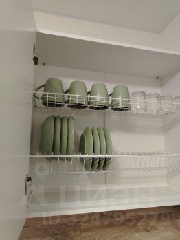 электрическая плита, СВЧ печь, холодильник, чайник, набор посуды;