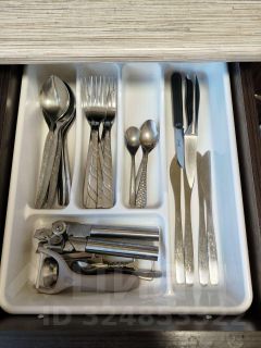 - Бытовая техника: стиральная машина, плита, холодильник, микроволновая печь, электрочайник, фен, утюг.