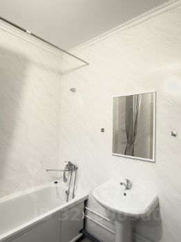 Санузел совмещенный, проведена сантехника отдельно для раковины и ванной, полочки, шторка, есть стиральная машина.