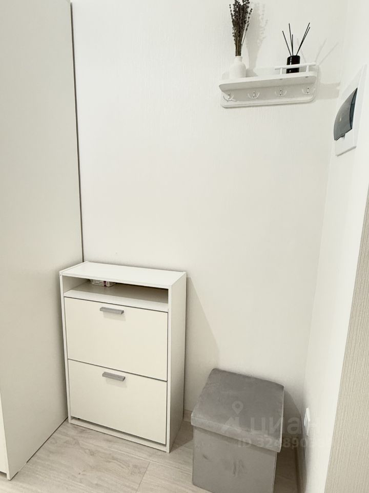 В прихожей большой шкаф, обувница и пуфик с местом для хранения.