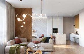 Квартира состоит из большой кухни - гостиной, 2 спальни, 2 санузла, душевая система с термостатом, лоджия, гардеробная, постирочная.