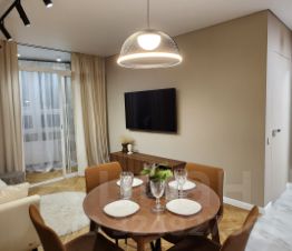 Новая, свежий ремонт, никто не жил. Полностью готова к заселению, есть все необходимое (все новое!), включая посуду, все кухонные принадлежности и хозяйственные предметы (сушилка для белья, гладильная доска-стремянка, складной таз). Имеется бытовая техника: кондиционер, стиральная машина, посудомоечная машина, пылесос, микроволновка, электрическая плита и духовка, вытяжка, утюг. Все, что представлено на фото, остается на время пользования арендатором. В отделке и при оформлении использованы качественные современные материалы, приоритет был отдан в сторону натуральных. В остальном квартира функциональна и продумана до мелочей: