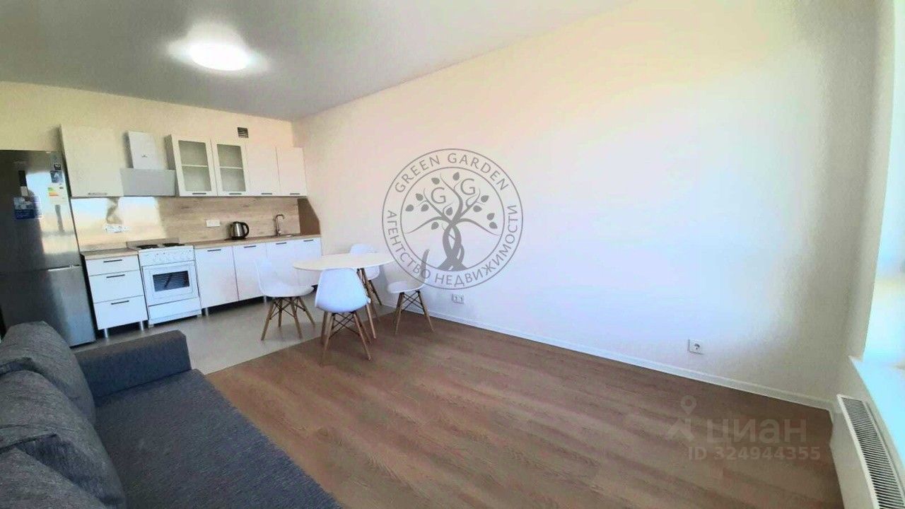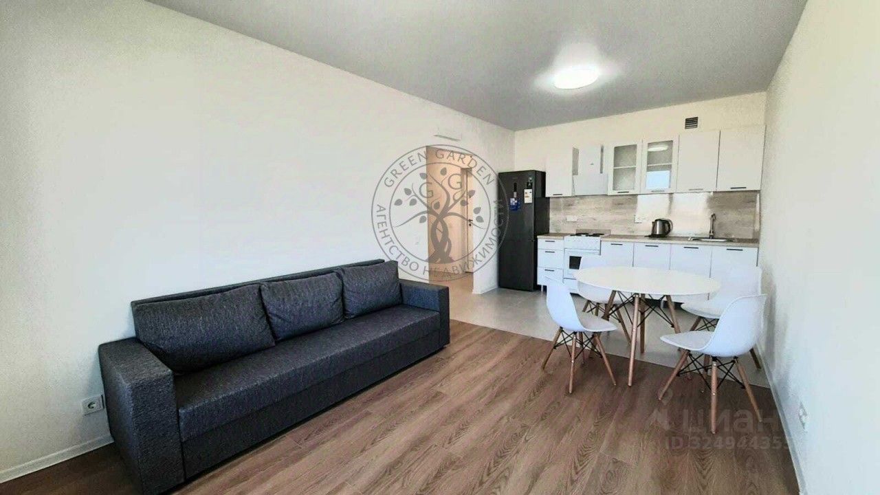 Есть вся необходимая мебель и техника: кухонный гарнитур, плита, холодильник, стиральная машина, кухонный стол и стулья, диван, кровать, кондиционер.