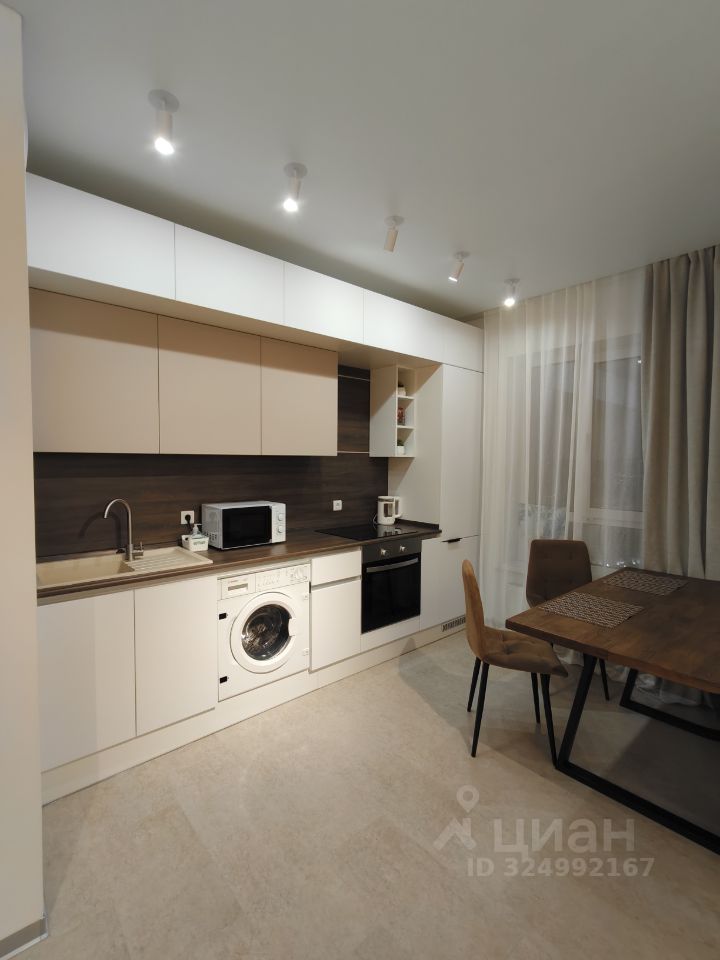 Техника: варочная панель, духовой шкаф, вытяжка, холодильник, микроволновка, телевизор, стиральная машина. Пол тёплый.