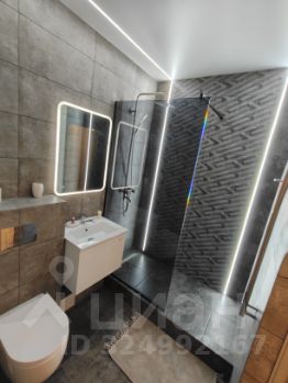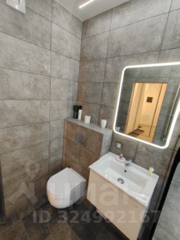 Мебель: гардеробная большая с зеркалами - купе, диван большой кожанный, кухонный гарнитур с обеденным столом и стульями. Зона отдыха на балконе с шикарным видом. В санузле плитка в стиле лофт.