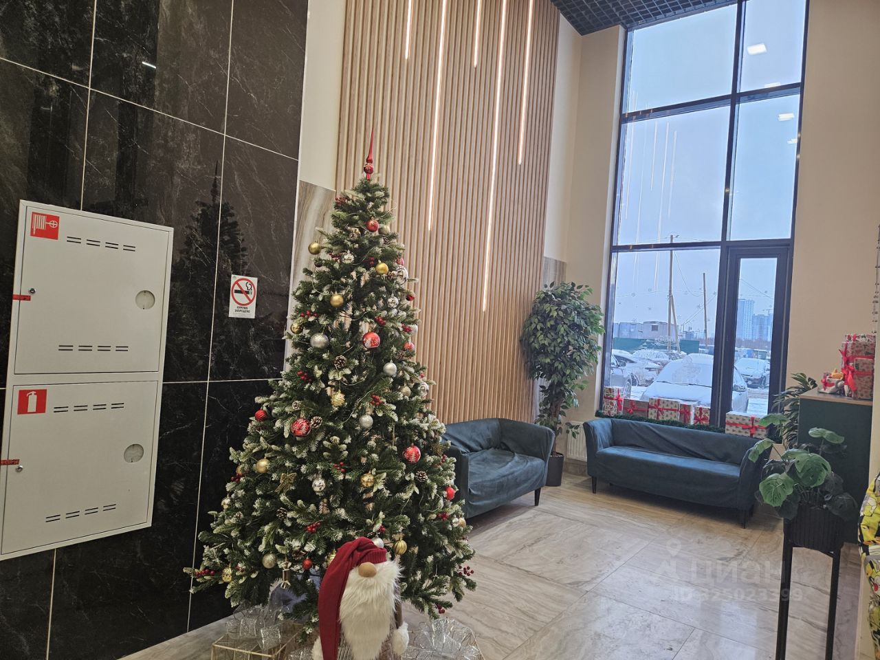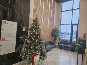 Большой холл в подъезде уже украшен к новому году, большая колясочная, 3 лифта.