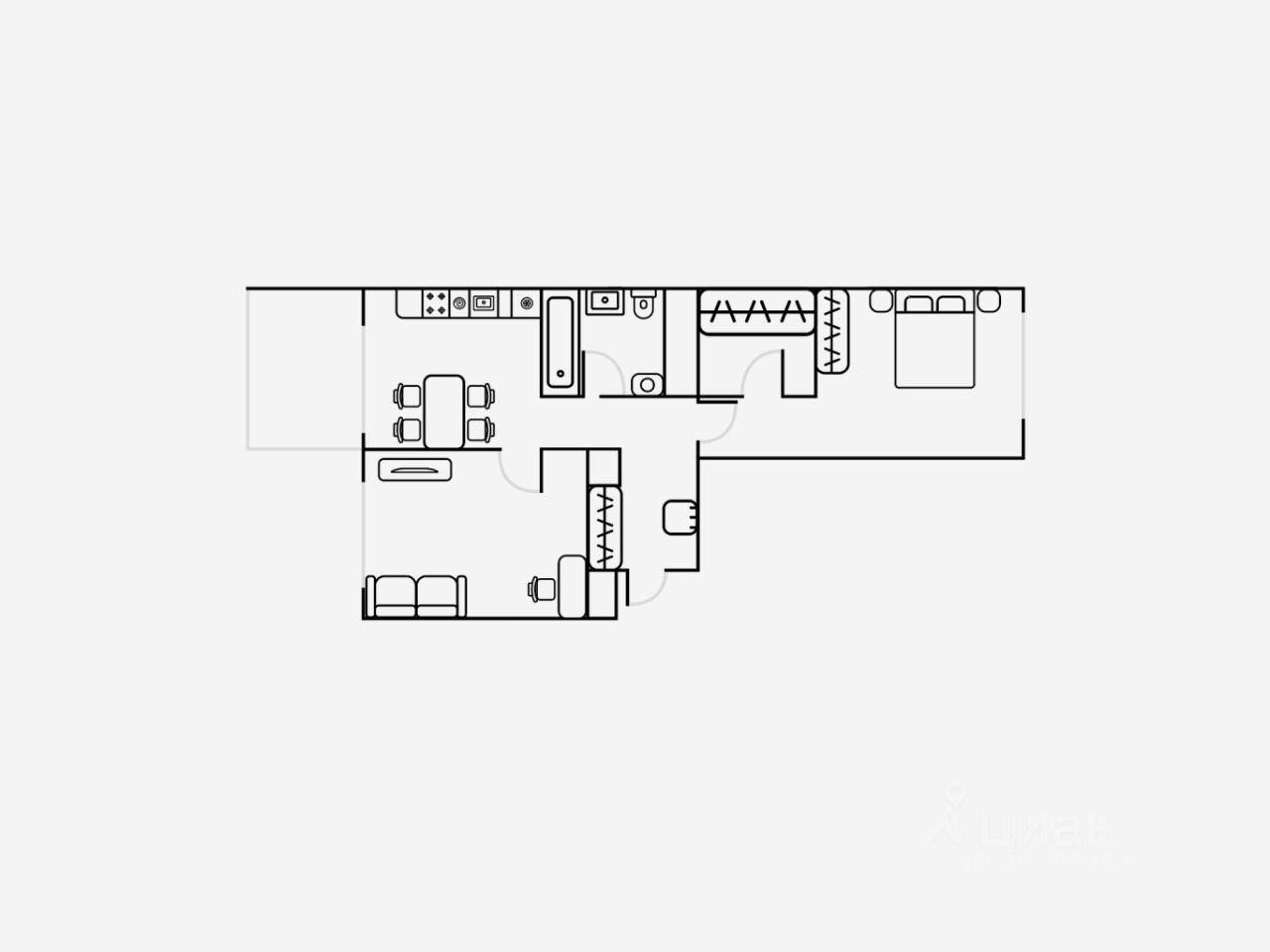 В квартире предусмотрен полный комплект мебели для жизни: