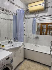 В ванной комнате установлена стиральная машинка и водонагреватель.
