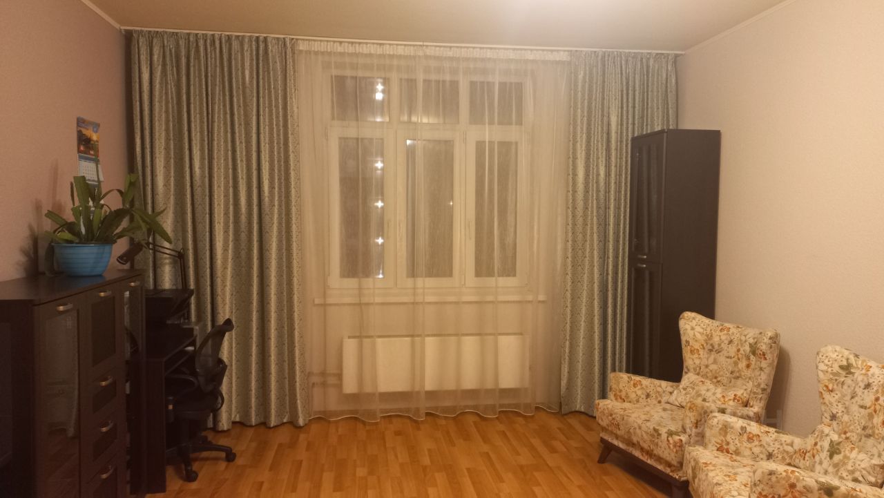 Квартира окнами на юг, очень светлая. В комнате затемняющие шторы для комфортного сна.