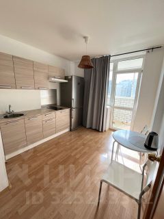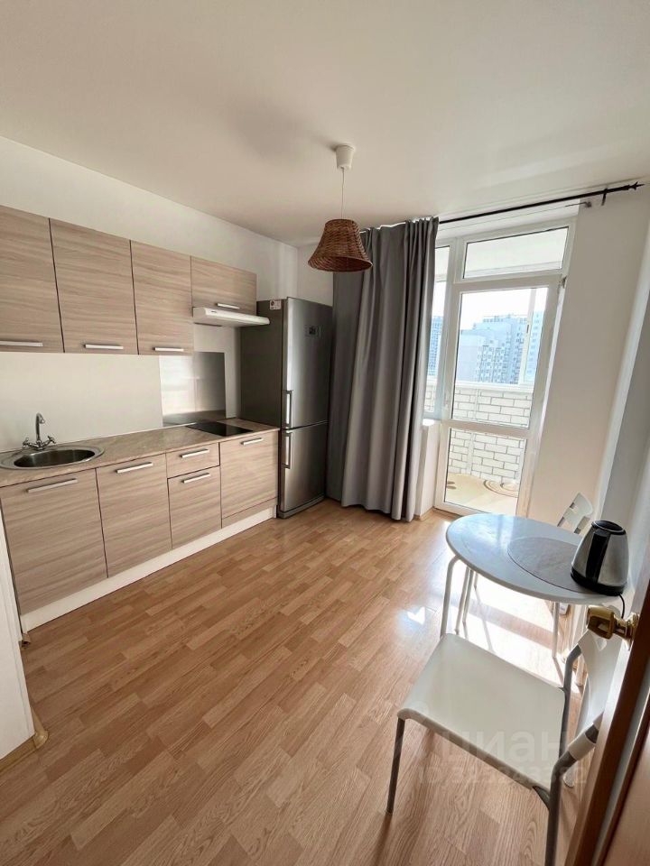 В комнате имеется диван и гардеробная. На кухне установлен кухонный гарнитур с варочной поверхностью и вытяжкой, холодильник, чайник, обеденный стол и стулья. В ванной стиральная машина автомат. Двор и подъезды под видео наблюдением - охраняется. В доме есть подземная парковка.
