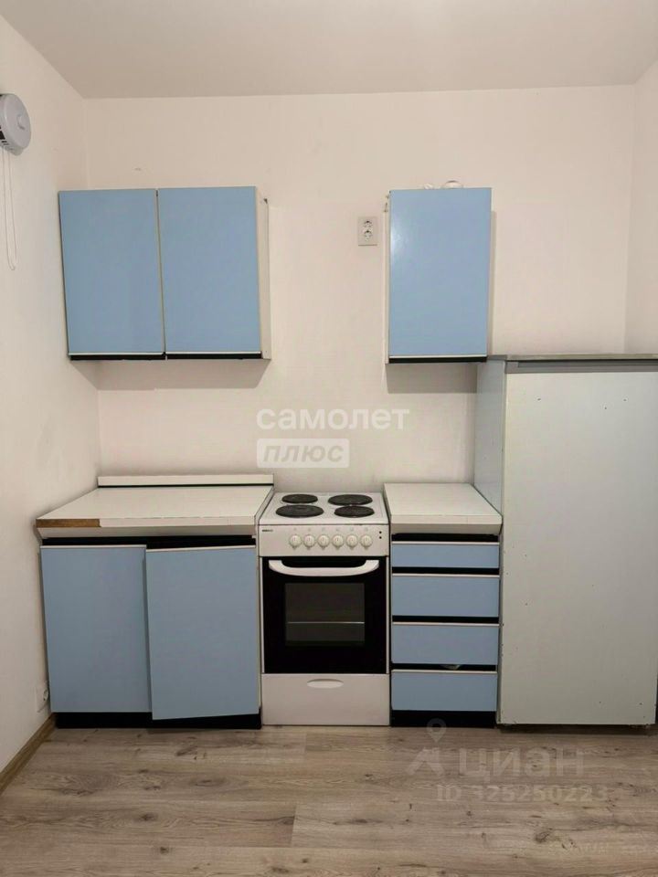 В квартире установлен кухонный гарнитур, холодильник, электроплита и шкаф.