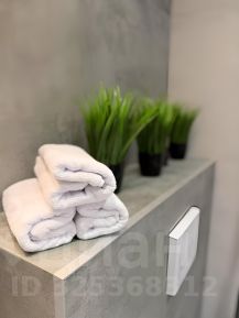 стильная ванная с пушистыми полотенцами и гигиеническими принадлежностями