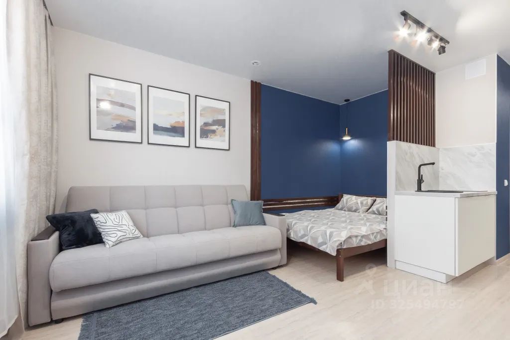 Уютная новенькая студия! Удобное расположение в 10 минутах пешком от метро Чкаловская, а так же улицы Белинского и 8 Марта с их большим возможностями общественного транспорта.