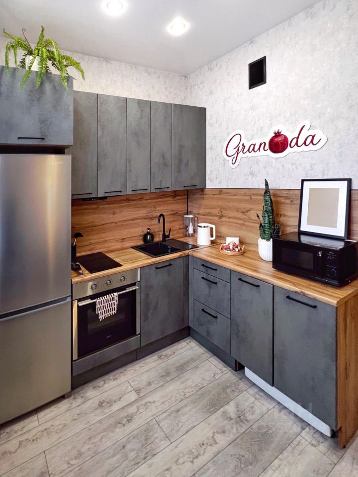 В апартаментах есть все для комфортного проживания: телевизор, холодильник, кухонная плита, стиральная машина, микроволновая печь, электрический чайник, фен, двуспальная кровать, двуспальный диван-кровать, стол, постельное белье, полотенца, посуда и столовые приборы, сушилка, утюг, гладильная доска, ролик, спутниковое ТВ, высокоскоростной интернет, Wi-Fi. Приветственный набор в виде чая/кофе/сахара для каждого из гостей. Предметы личной гигиены, а именно: гели и шампуни в дозаторах, зубные наборы, ватные диски, ватные палочки, зубочистки, одноразовые тапочки, предметы женской гигиены, салфетки, туалетная бумага и т.д.