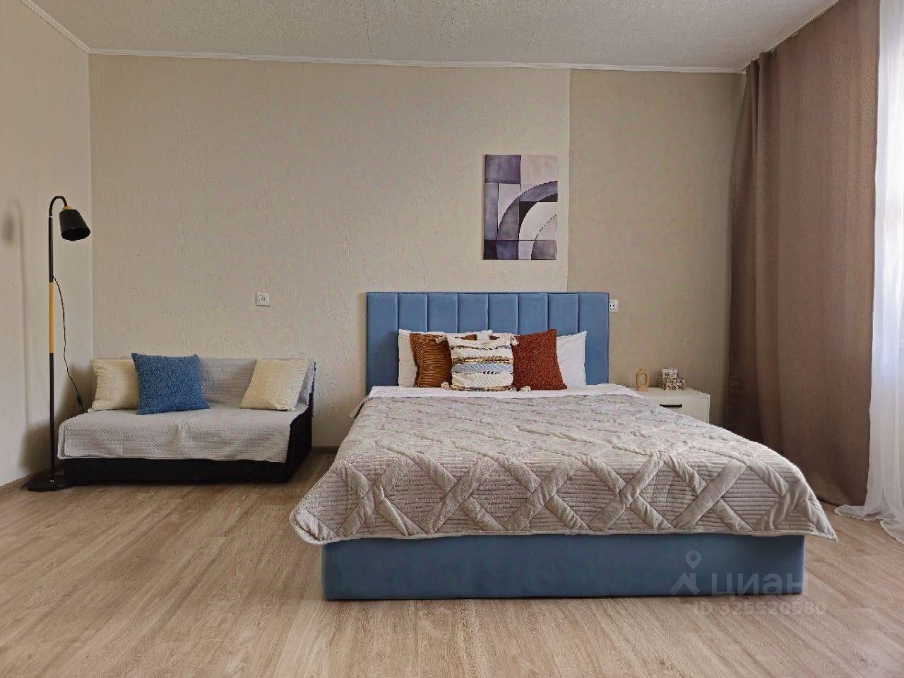 Апартаменты оснащены: Wi-Fi, телевидение со Smart TV, бытовая техника: телевизор, стиральная машина, электрическая плита, холодильник, микроволновая печь, электрочайник, фен, утюг, посуда, свежее хрустящее постельное белье и мягкие полотенца, одноразовые средства гигиены, гладильная доска, 1 двуспальная кровать, 1 раскладной диван.