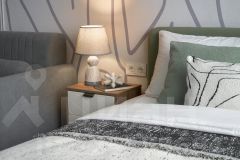 Уютная двуспальная кровать и мягкое кресло для полноценного отдыха после зимних забав.