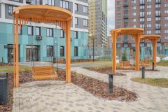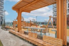 Детская площадка и оборудованные зоны отдыха во дворе: свежий воздух и пространство для игр даже зимой.