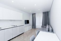 Квартира с индивидуальным интерьерным решением в современном стиле, качественной отделкой, мебелью и техникой для жизни от ведущих брендов (Hotpoint, LG):