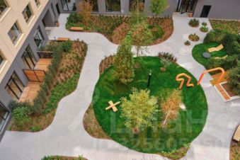 Внутренний двор оборудован современными детскими площадками и work-out зоной. Во входных группах предусмотрено помещение для хранения детских колясок, велосипедов и самокатов.