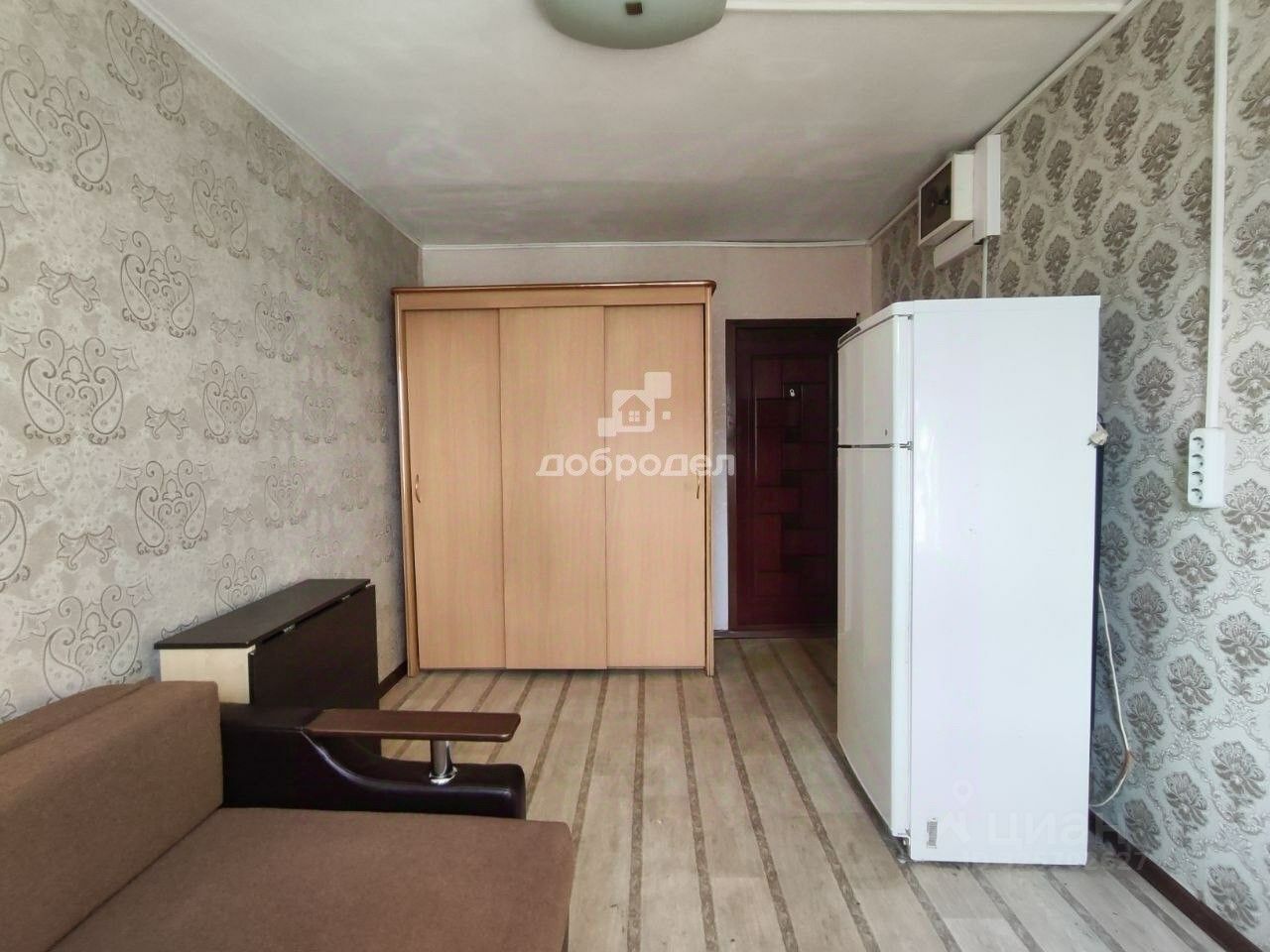 В комнате есть шкаф, холодильник, диван. Стиральная машина в коридоре.