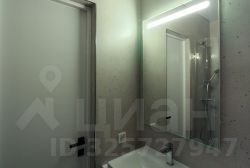 В студии совмещенный санузел с душевой кабиной, а также раковиной с зеркальной подсветкой.