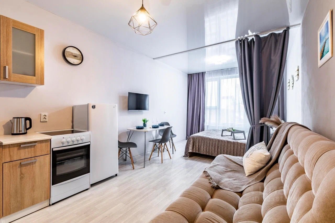 Студия в Екатеринбурге у метро Чкаловская по Чкалова 18. Рассчитана на размещение до 4-х человек и оснащена одной двуспальной кроватью и диваном