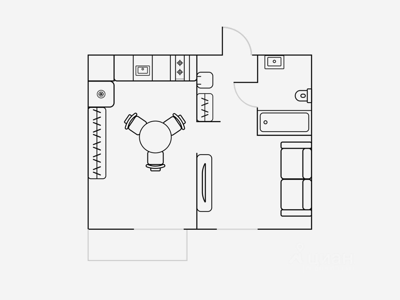 Эргономичная планировка пространства. Из зоны кухни есть выход на балкон с видом во внутренний двор