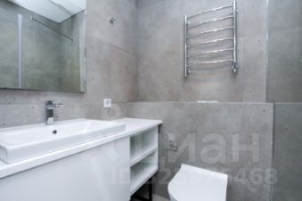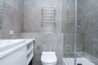 В студии совмещенный санузел с душем, а также раковиной с зеркальной подсветкой.
