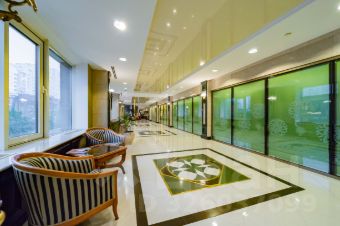 потолки выполнены стеклянными витражами с подсветкой,
