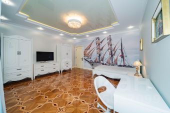 Квартира полностью меблирована (мебель из массива древесины, производства Италии) , кухня оборудована премиальной техникой MIELE, в сан узлах установлена сантехника Villeroy.