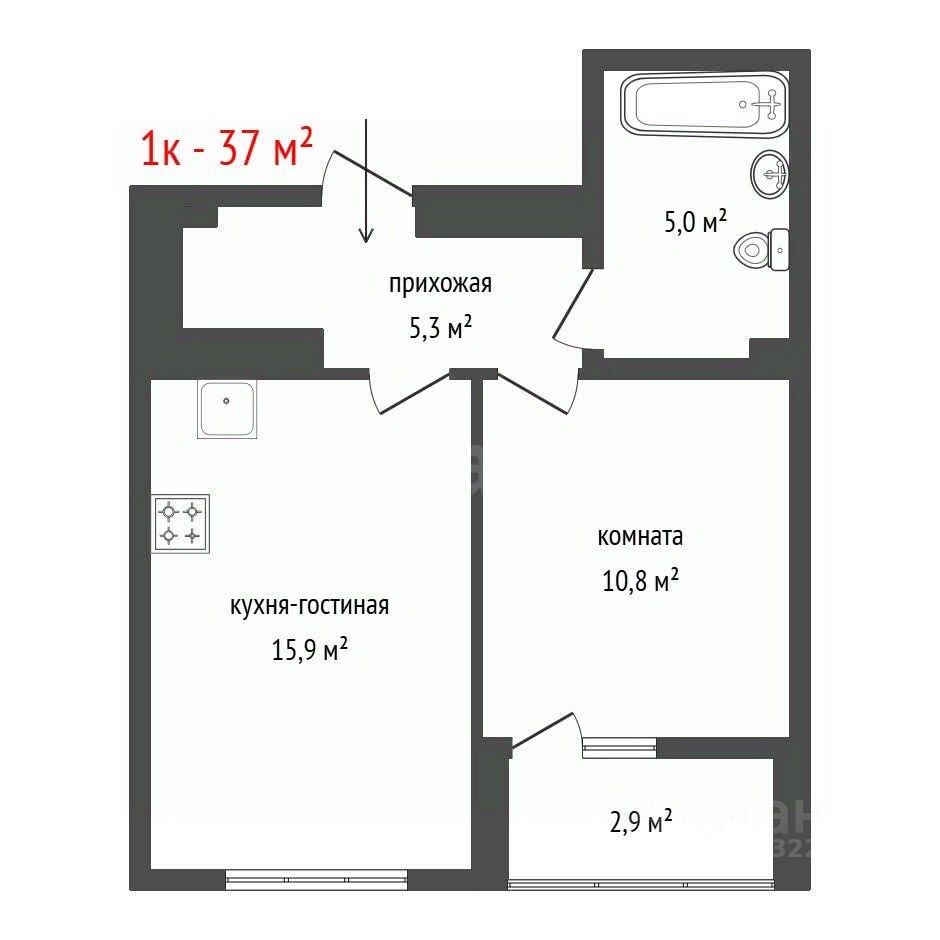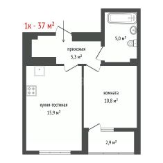 Просторная Гостиная 15,9м2, спальня 10,8м2, лоджия.