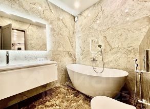 В квартире сделан дизайнерский ремонт, который создаёт атмосферу уюта и современности. В наличии вся необходимая мебель на кухне и в комнатах. Совмещённые санузлы оснащены ванной и душевой кабиной. Из техники имеются кондиционер, холодильник, посудомоечная и стиральная машины, а также телевизор. Это позволяет сразу заселиться и наслаждаться комфортом.