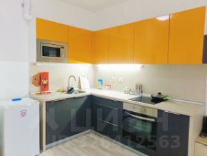 В студии дизайнерская оборудованная кухня с духовкой, микроволновкой, мини-холодильником. Есть обеденный стол, имеется вся посуда, компьютерный стол, раскладной диван, душевая кабина, стиральная машина, сушилка для белья, в прихожей зеркальный шкаф-купе.