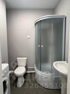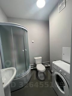 В квартире имеется необходимая мебель: удобный диван и вместительный шкаф. Из бытовой техники доступна стиральная машина, микроволновка. Санузел совмещенный, оформлен в современном стиле.