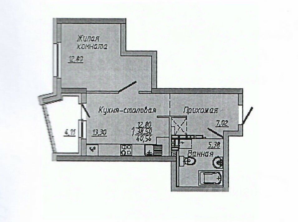 Тип планировки евродвухкомнатная квартира. Отдельно спальная комната и вместительная кухня-гостиная.
