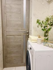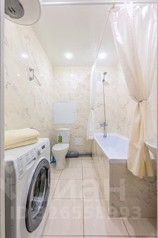 Ванная комната: ванная, стиральная машина, полотенца, утюг, гладильная доска, сушилка, фен, гель для душа, шампунь, мыло, зубная паста.
