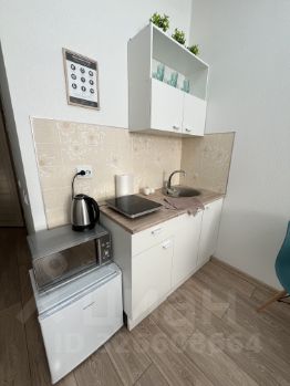 В квартире сделан дизайнерский ремонт, который создаёт атмосферу комфорта и стиля. Студия полностью меблирована, здесь есть вся необходимая мебель для комфортного проживания. К вашим услугам холодильник, телевизор и стиральная машина. Санузел совмещённый, в ванной комнате есть ванна, где можно расслабиться после долгого дня.