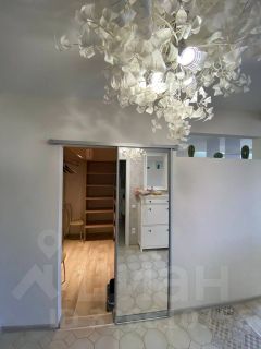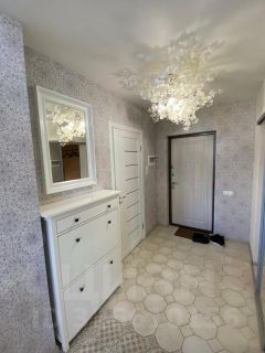 В квартире продумано освещение, подсветка зон, дизайнерская люстра в прихожей в форме цветка.