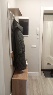 Квартира полностью готова для комфортного проживания. Внутри выполнен аккуратный ремонт, обеспечивающий приятную атмосферу. На кухне есть необходимая мебель и техника, включая холодильник. В комнате также имеется мебель, а в ванной комнате установлена ванна и стиральная машина, поэтому можно сразу же заехать и начать жить.